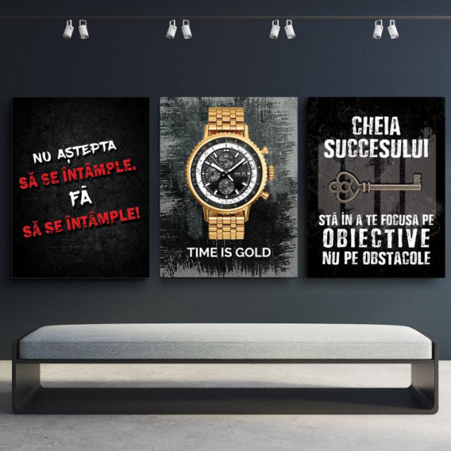 Pachet tablouri canvas motivationale - set 3 tablouri Cheia, Time si Nu astepta