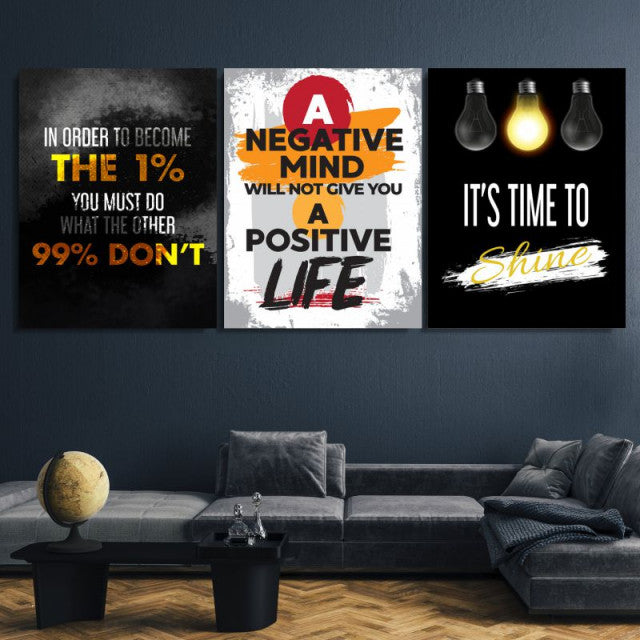 Pachet tablouri canvas motivationale - set 3 tablouri Negative, Time to shine si 1%