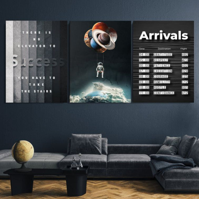 Pachet tablouri canvas motivationale - set 3 tablouri Sosiri, Astronaut si Success