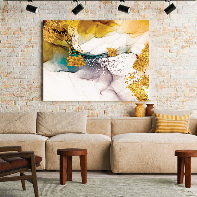 Un tablou abstract cu insertii de marmura si aur. Comanda acum taboul Golden Abstract Fantasy, pentru un plus de rafinament si grandoare casei tale!