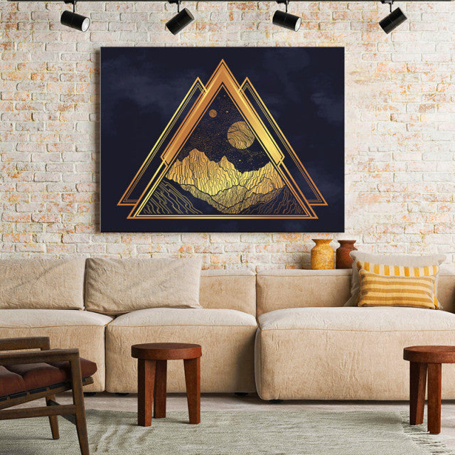 Esti pasionat de magie, simbolistica si totodata de artele moderne? Atunci acest tablou Golden Symbols, cu influente abastracte si insertii aurii este perfect pentru locuinta ta.