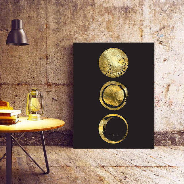 Un tablou elegant si modern, Golden circular symbols (single), cu elemente geometrice aurii. Comanda-l acum pentru locuinta sau biroul tau!