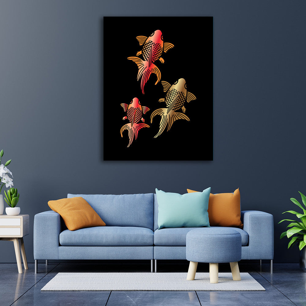 Un tablou minimalist si stilat, Japanese goldfish, cu pesti japonezi stilizati si elemente aurii. Achizitioneaza-l acum!