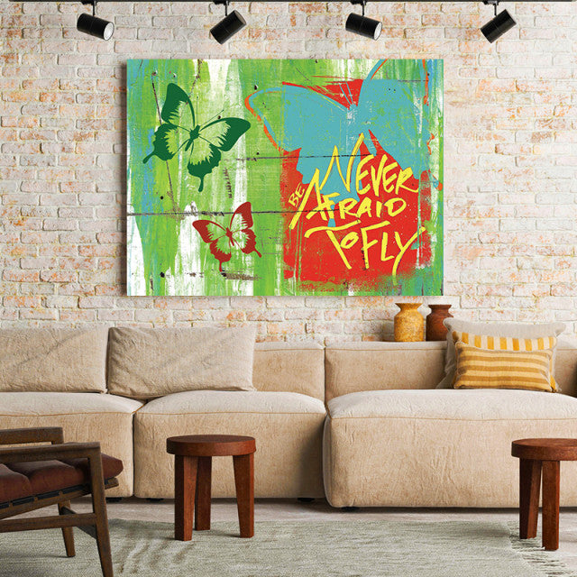 Nu-ti pune limite atunci cand vine vorba de creativitate si vise - acesta este mesajul transmis de acest tablou motivational plin de culoare, cu fluturi stencil art. Comanda-l acum!