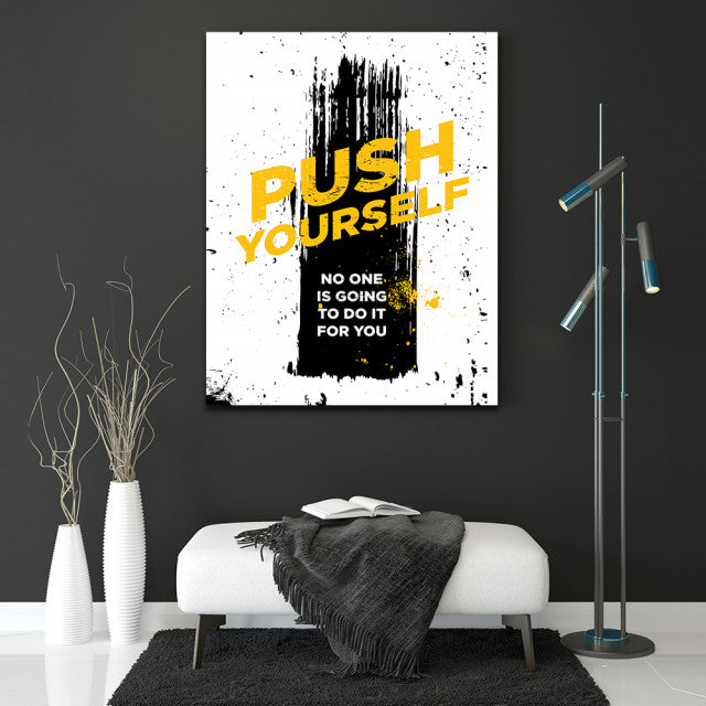 Un mesaj simplu dar incarcat de semnificatii, Push yourself, in care orice antreprenor sau leader se va regasi - comanda acest tablou cu efect de pictura pentru firma ta!