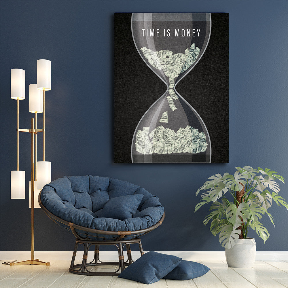 Time is money (hourglass) - o reprezentare vizuala clara a celebrei zicale timpul inseamna bani si un tablou perfect pentru biroul tau, cu o clepsidra in care curg bancnote. Achizitioneaza-l acum!